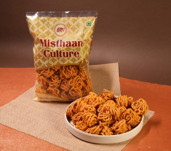 Butter Masala Murku Chakli brings the best of southern Murukku and western spice in one buttery twist. Infused with bold masalas and a rich buttery base, it?s crispy, savory, and full of flavor. Hand-spun into traditional spirals and fried till golden, each bite crumbles with satisfying crunch. The taste lingers with gentle heat and a rich finish. A snack for family gatherings or quiet moments alike. It?s tradition with a twist of indulgence.